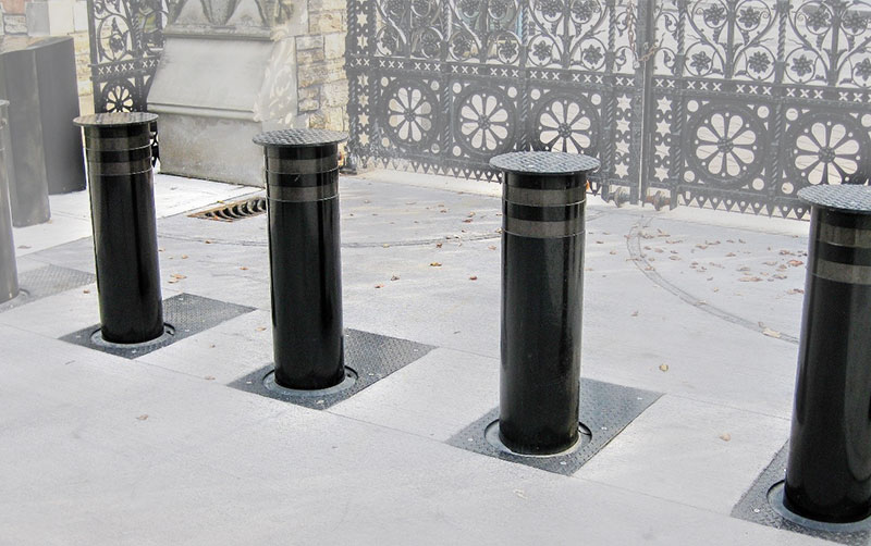 این مدل که بیشتر در اماکن با ضریب امنیت بالا و حساس استفاده می شوند و یکی از مطمئن ترین موانع جهت کنترل تردد وسائل نقلیه می باشند ، چرا که بدنه فولادی این راهبند بصورت ستونی از میله فولاد با روکش استیل در پایه ای فولادی دیگر که بوسیله بتن ریزی در کف مهار شده ، قرار گرفته و در زمان ایجاد هرگونه برخوردی ، این وسیله نقلیه است که بیشترین آسیب را دیده و با ناتوانی در عبور از مسیر ورودی متوقف می گردد. برای نصب راه بند ستونی نیاز به فونداسیونی به عمق 1.5 متر و عرض 1 متر می باشد. معمولا راهبند بولارد از استوانه ای 80 الی 100 سانتی متری تشکیل شده است که به صورت عمودی حرکت کرده و از سطح زمین بالا می آید (سرعت بالا و پایین آمدن ستون دستگاه بسته به مدل و نوع آن از ۱٫۲ ثانیه تا ۷ ثانیه متغیر است). مقاومت در برابر ضربه در برخی راهبند پارکینگ ستونی به اندازه ای است که توانایی متوقف کردن یک کامیون به وزن تقریبا 6 الی 7 تُن با سرعت 60 الی 80 کیلومتر بر ساعت را دارا می باشند. همچنین راه بند ستونی دارای سنسوری است که در صورت تشخیص وجود جسمی مانند اتومبیل در روی راهبند به سمت بالا حرکت نکند تا آسیبی به دستگاه و اتومبیل وارد نشود.